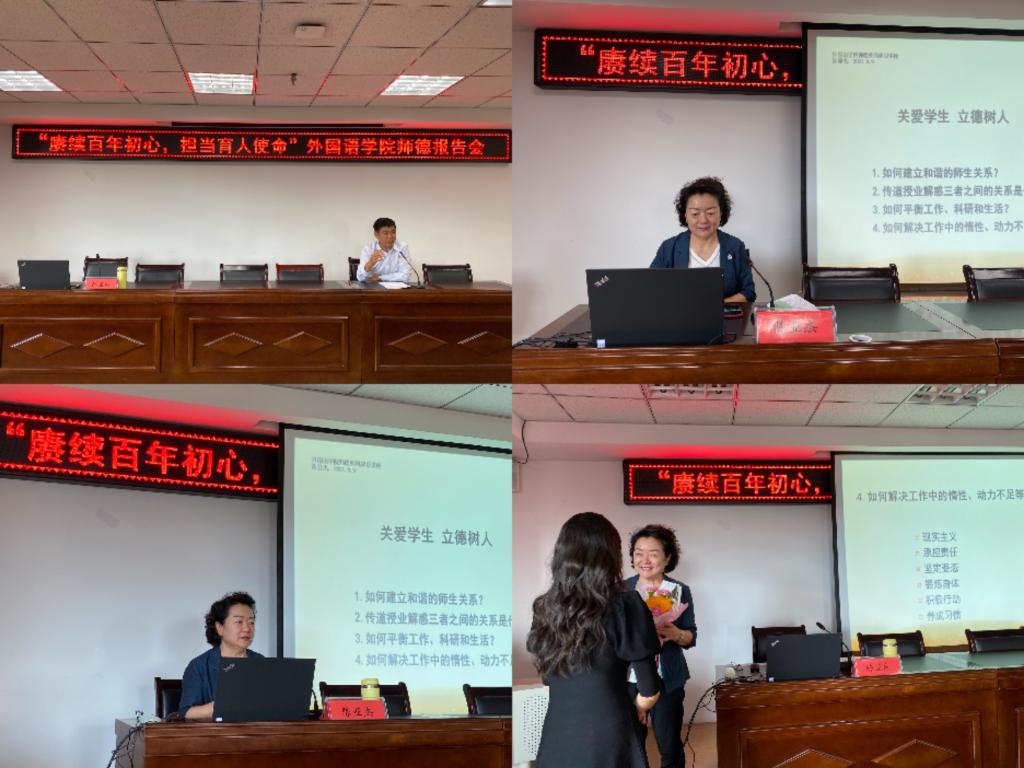会上,陈亚杰教授结合自己30多年的从教经历,以鲜活的事例,与大家分享了她多年的教学体会和感悟,为全体教师详细解答了工作过程中经常出现的疑惑和问题。陈老师给全院教师,特别是青年教师上了一堂生动的教育课。通过本次报告会,全体教师深入理解了“学为人师,行为世范”这句话的内涵。教师要做员工健康成长的指导者和引路人。自觉遵守新时代高校教师职业行为十项准则,坚守教师职业道德底线。