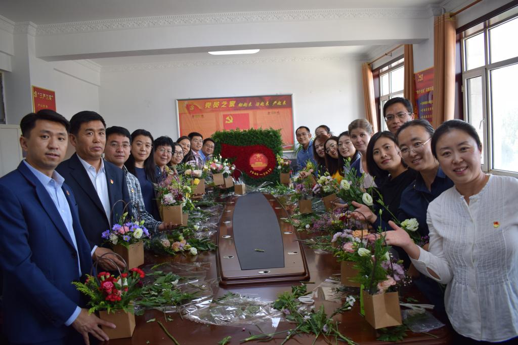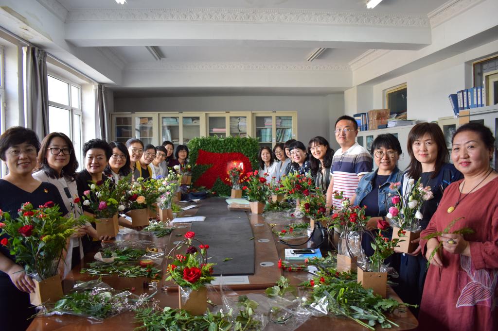 首先,教师党员代表陈亚杰教授带领全体师生面向国旗和校旗庄严宣誓,要忠诚于党的教育事业,教书育人,言传身教,努力做党和人民满意的好老师,为光辉的高等教育事业奉献全部智慧和力量。之后,师生同唱《我和我的祖国》,抒发心中炽热的爱国之情,为新中国成立70周年庆生。随后,各系部组织老师举行集体插花迎接国庆活动。