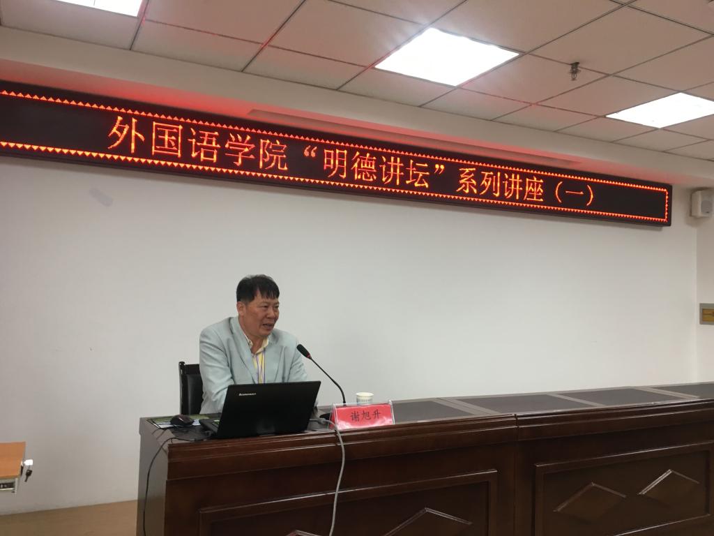 4月29日,全国翻译专业学位研究生教育指导委员会委员、中国英汉语比较研究会理事、新疆大学谢旭升教授应邀做客伟德明德论坛,为全院师生带来两场学术讲座,公司全体教师、研究生及部分本科生聆听了讲座。讲座由伟德副经理栗霞主持。