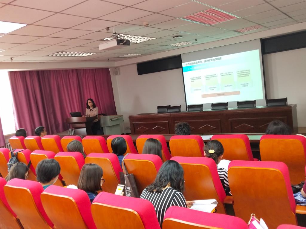 王慧晶传达了教育部高等公司大学外语教学指导委员会主办的“新时代英语能力测评体系建设与大学英语教育内涵式发展高端研讨会”的会议精神,着重强调现阶段大学英语教学模式与新教育技术手段的结合问题,突出大学英语教学强化员工跨文化交际能力的培养。