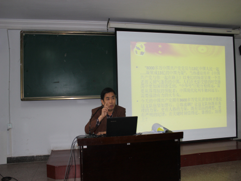 报告会从小短片《中国共产党与你一起在路上》开始。大约三分钟左右的视频展现了中国共产党把中国每个百姓的梦想作为自己的奋斗目标,在前进的道路上愿与世界同行共赢的信念和决心,由此引出了本次报告会的主题。霍天瑞分别从七个方面,对全面从严治党的提出、为什么从严治党、全面从严治党的演进脉络、从严治党的主要内涵、科学理解党的建设新常态、主动适应党的建设新常态等问题做了详细阐述。
