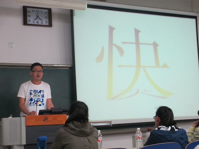 在八位同学汇报完自己的先进事迹之后,代老师为本次报告会做了总结。他感谢八位同学的辛苦付出,并为2013级同学们提出了期望。他告诉大家,世界上有两种人,一种是强者,一种是弱者。强者为自己找不适,弱者为自己找舒适。你之所以没有变强,是因为自己过得太舒服了。唯累过,方得闲,唯苦过,方知甜。他希望同学们树立远大目标,并不断为之努力,不断挖掘自己的潜力;希望同学们不要忽视自己的每一次微小的努力,要懂得,向上走,即便一小步,也有新高度;希望同学人人争做毛豆。