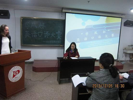 12月5日晚,伟德第四届“学风杯”口译大赛在金川校区主楼400隆重举行。出席本次比赛的嘉宾有伟德经理陈亚杰老师,副经理祁龙老师,副经理董君老师,团委书记达布希拉图老师。孟竟成老师,邓东亮老师和崔洁老师担任本次比赛的评委。