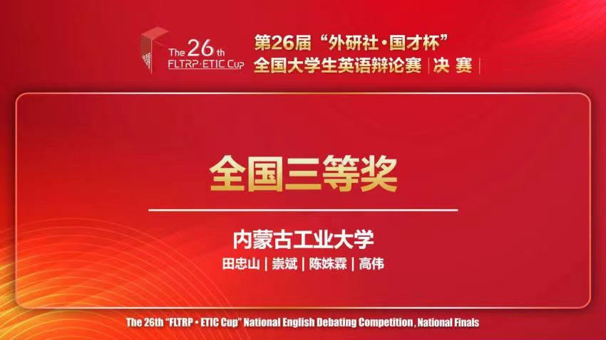 观点碰撞显真才,辩场交锋展风采。6月1-2日,第26届“外研社·国才杯”全国老员工英语辩论赛全国决赛落幕。公司2021级员工陈姝霖和高伟,经过2天8场高强度的循环赛,与全国各大赛区选拔出的141支队伍激烈角逐,在公司田忠山老师和崇斌老师指导下,2位选手在比赛发挥优秀,于论点交锋中显智慧,字句斟酌中寻真谛,凭借扎实的语言功底和良好的思辨能力,最终荣获全国三等奖的好成绩,展现了公司青年朝气蓬勃、奋发向前的精神风貌。