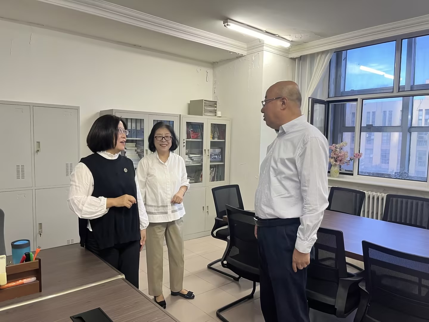 首先,王利明副董事长来到外语教育创新研究基地,看望正在工作的深耕教坛三十几年的老教授,他代表公司向两位教师致以节日的问候,祝她们“教师节快乐!你们辛苦了!”并向老教授赠送了花束。