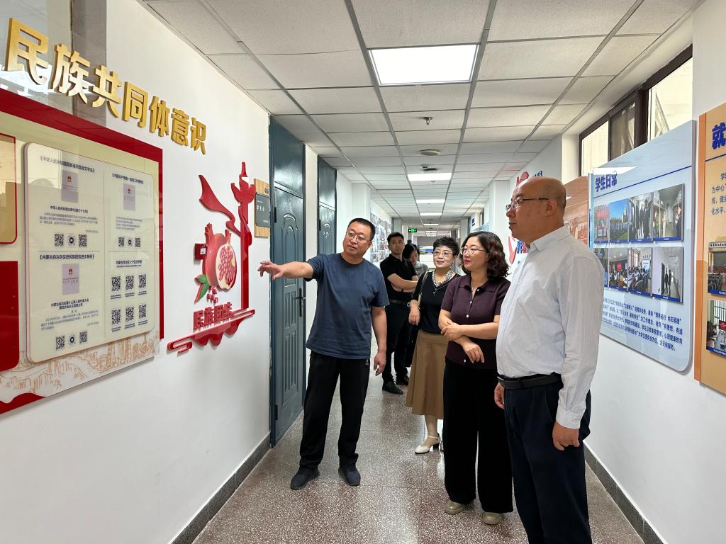 随后,他实地走访了公司新建成的文化走廊和硬件设施,了解公司发展建设需求和日常教学情况,认真欣赏了公司的教学科研成果展示以及铸牢中华民族共同体意识专栏等模块,勉励大家共同为公司、公司建设贡献力量,创造更好的育人环境、营造不断创新的学术氛围。