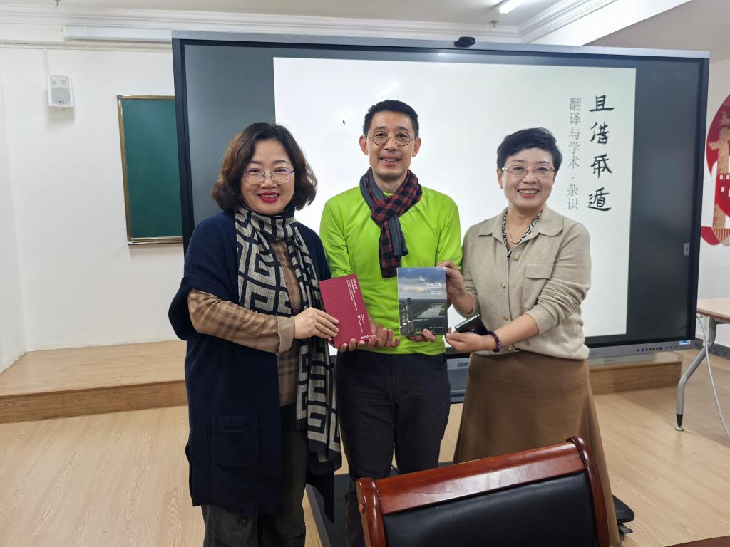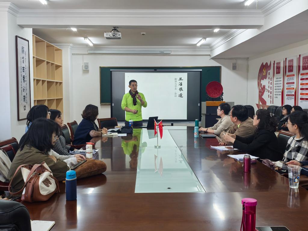 作为非英语专业的学者,段教授与在座教师分享自己在翻译建筑学著作《无限之境》、《帝都来信》时的经历与感悟。他提到,翻译不仅是文字技术工作,更是一种不同文化语境之下的译者再创造。讲座结束后,段教授与在场教师进行了热切的交流,碰撞出了学术的火花。