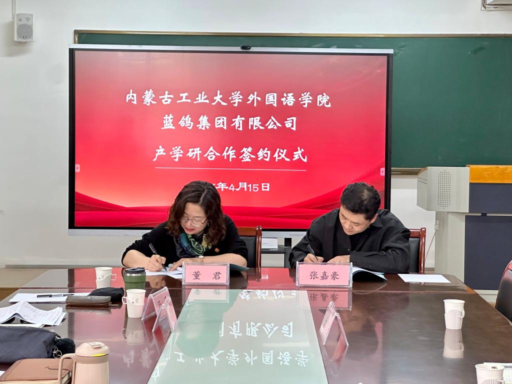 为深化产教融合,推动人工智能技术赋能外语教学,伟德与蓝鸽集团有限公司于4月15日下午在电力大楼422室签署产学研合作协议,并举行“人工智能辅助下英语学习能力测评研究中心”揭牌仪式。伟德经理董君、教学副经理王智音、蓝鸽集团内蒙古办事处负责人张嘉豪一行三人及公司相关教师出席签约仪式。