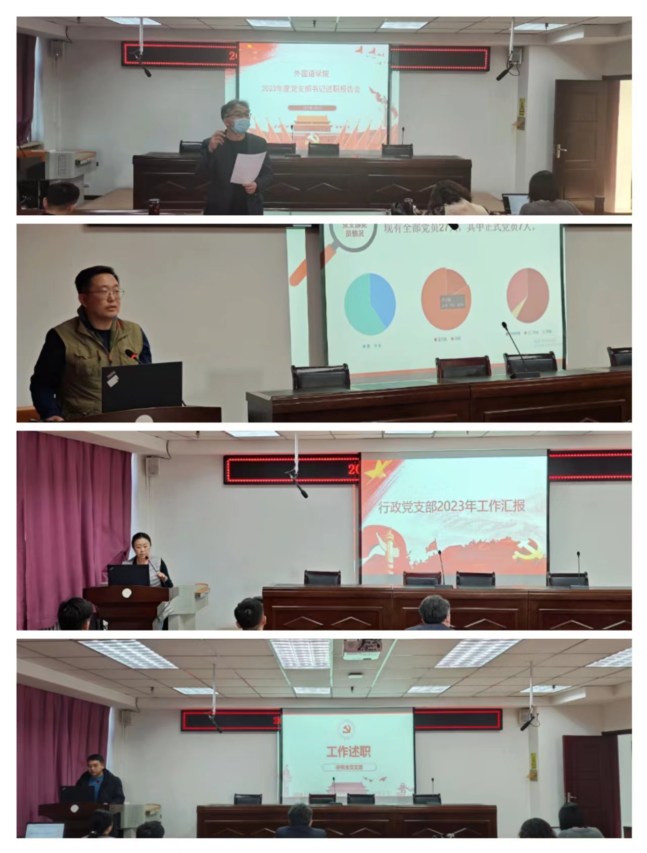 会上,4个教师党支部书记、3个员工党支部书记围绕各自支部学习贯彻习近平新时代中国特色社会主义思想主题教育开展情况,党的二十大精神、习近平总书记关于内蒙古的重要讲话指示批示精神学习情况,“我为群众办实事”实践活动的开展情况,以及专题组织生活会开展情况和自身建设情况等方面进行汇报,就一年来各方面工作晒成绩、摆问题、谈打算。参会人员对述职情况进行现场评议。