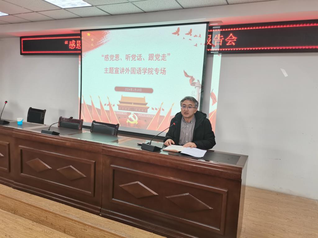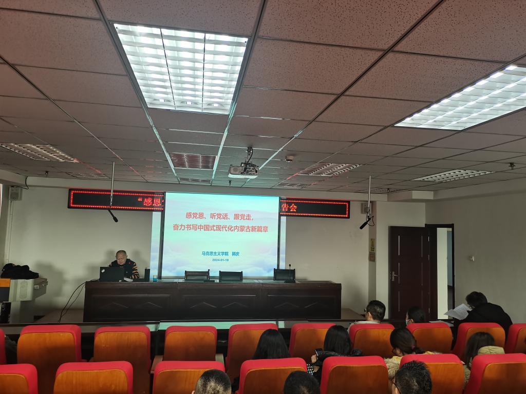 为推动习近平总书记对内蒙古的重要指示精神落地落实,1月18日伟德举办“感党恩、听党话、跟党走”主题理论宣讲会。全体教师和员工代表120余人参会。党委书记冯小虎主持会议。