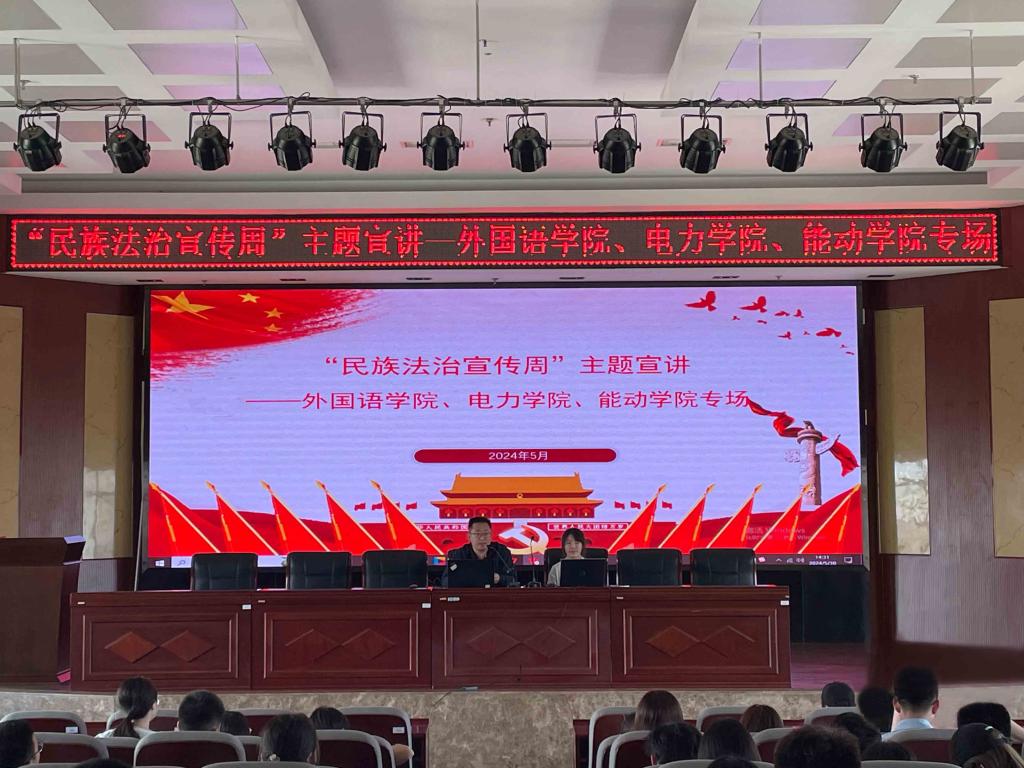 为了大力加强党的民族理论政策和法律法规宣传,5月30日伟德、电力公司、能动公司联合举办“民族法治宣传周”主题宣讲报告会。伟德教师汪雨主持会议,教师、员工代表180余人参会。