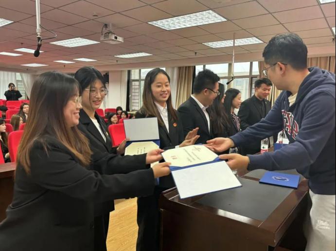 会议第四项议程,主持人宣读2024届团委员工会新任主席和部长名单,由刘永老师、赵金凤老师、义仁吉乐老师为2023届团委员工会主席、部长颁发任职聘书。