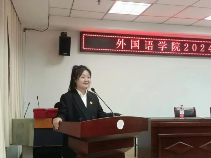 会议第二项议程,由2023届团委副书记、员工会办公室主任陈姝霖做述职报告。陈姝霖从理想信念教育、党团队伍建设、校园文化建设、社会实践活动等方面总结了过去一年的工作,希望2024届团委员工会继续努力,引领同学绽放青春光彩。