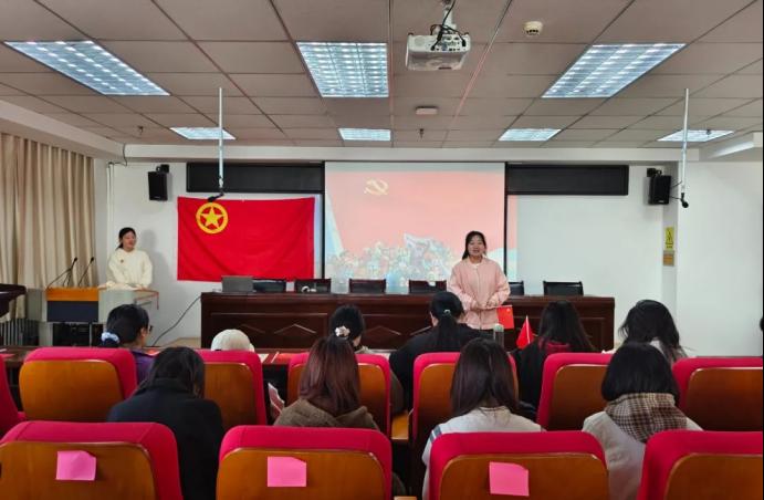 团员代表付宇荷同学上台朗诵了《可爱的中国》,触动人心的内容和饱含深情的演讲,让同学们认识到中国是如此可爱,母亲是如此可敬,我们要用青春和才华,去建设她,使她变得更美,无愧色地屹立于人类的面前!